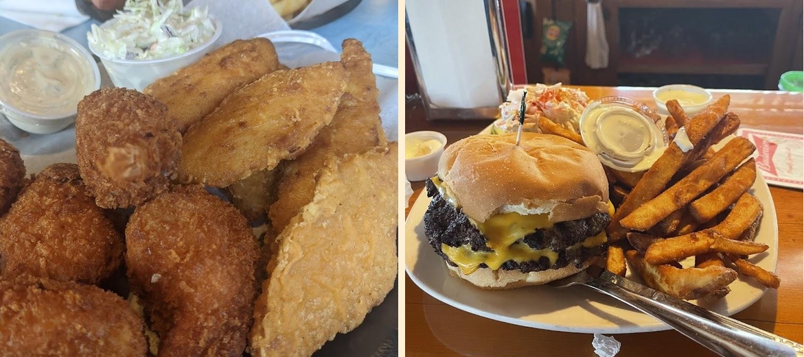 Expect simple, traditional dishes. Enjoy appetizers like chili cheese fries or chicken strips. Be sure to try local favorites and daily specials on the menu.